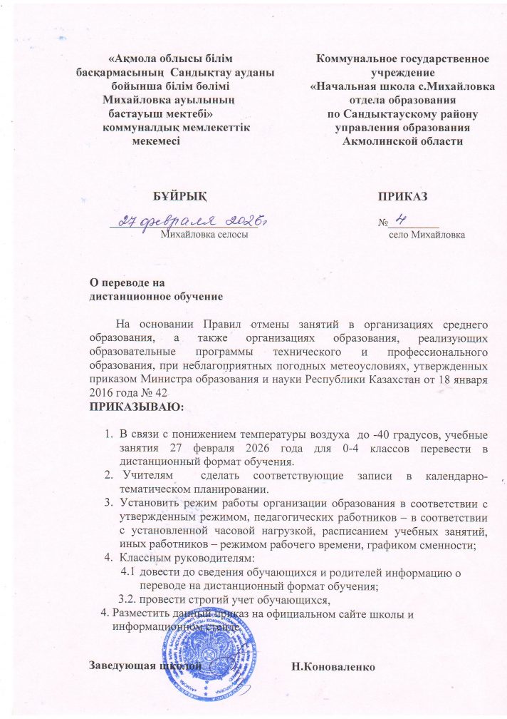 «Ақмола облысы білім басқармасының Сандықтау ауданы бойынша білім бөлімі Михайловка ауылының бастауыш мектебі» коммуналдық мемлекеттік мекемесі